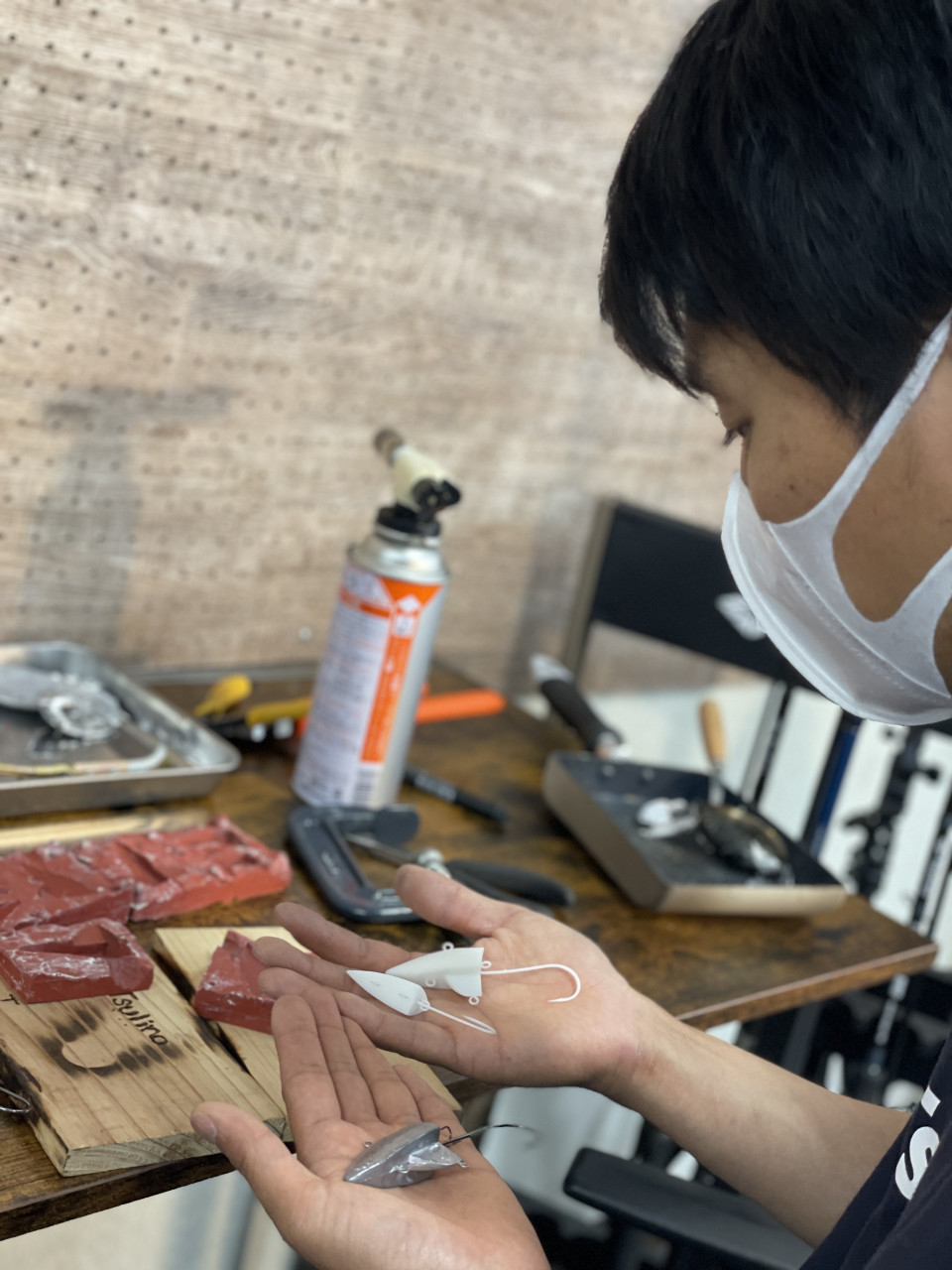 商品部菅原による型作り。ここからプロトサンプルを作成し実釣テストを繰り返し実施。