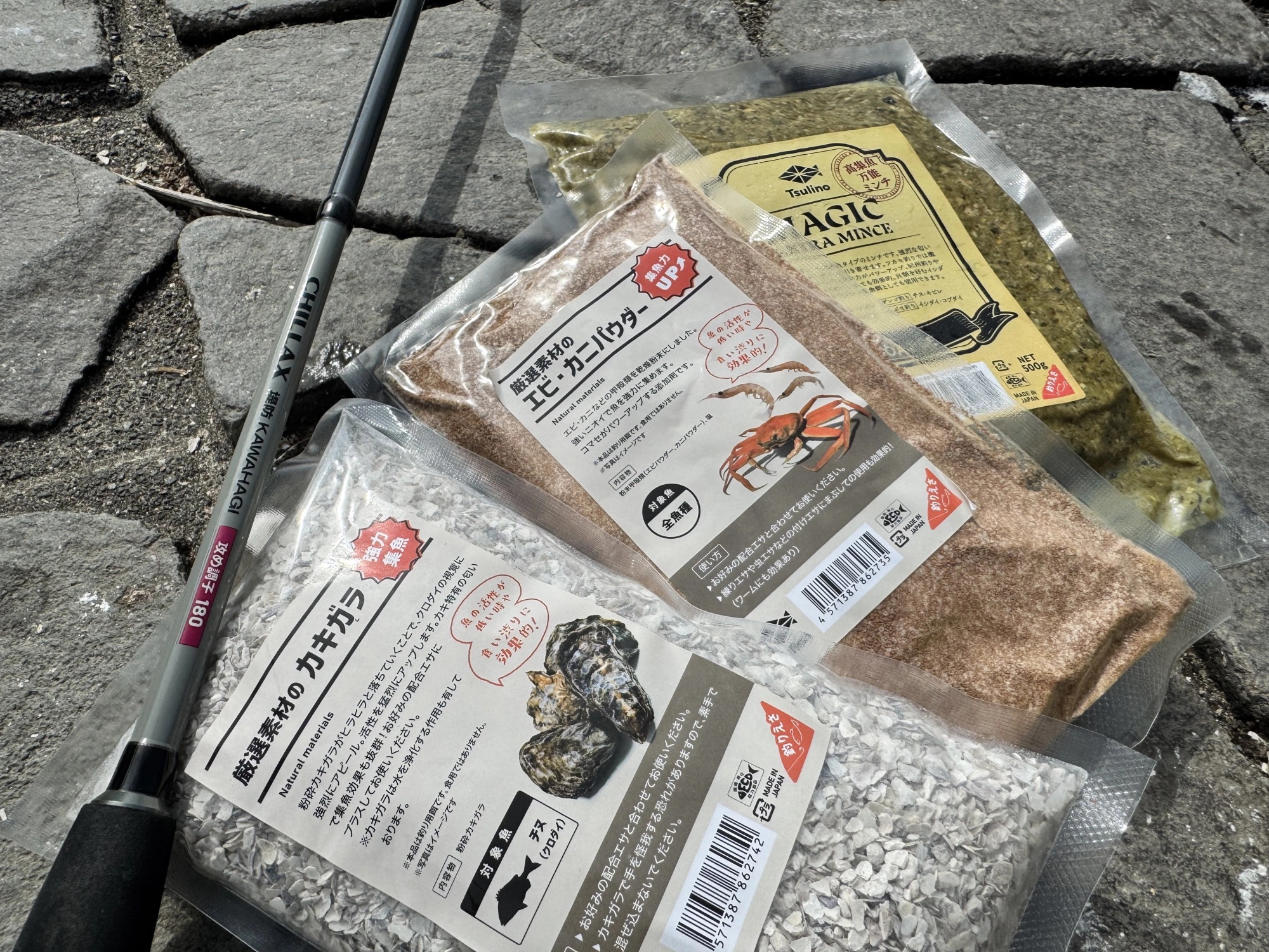 (配合目安:チヌミックス3.5kg×1、オキアミ8切、MAGIC EX MINCE(さなぎ)、チヌパワー1/3で調整)